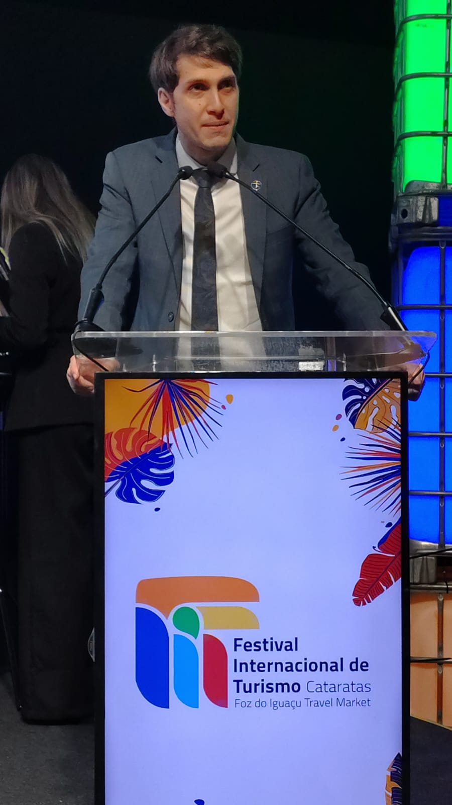 Paulo Angeli, idealizador e CEO do FIT Cataratas, deu início à cerimônia saudando autoridades e representantes do trade regional e nacional. Durante a solenidade, foi apresentada a nova logomarca do Festival, que, segundo Angeli, une tradição e inovação: “O FIT nesse tempo atraiu mais participantes, mais destinos”, comemorou.