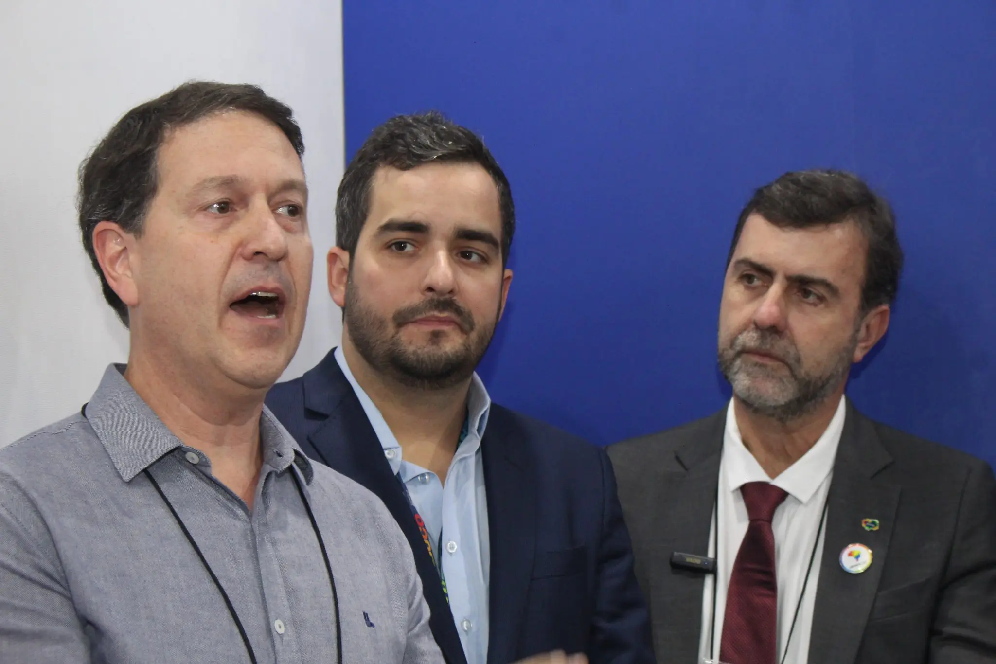 Ao centro Roberto Lucena, secretário de turismo e viagens de São Paulo, à sua direita César Grandolfo, gerente de relações institucionais da Azul, à esquerda Marcelo Freixo presidente da Embratur, mais a esquerda Eduardo Loyo, presidente da Empetur e outras personalidades durante o anúncio da nova rota.